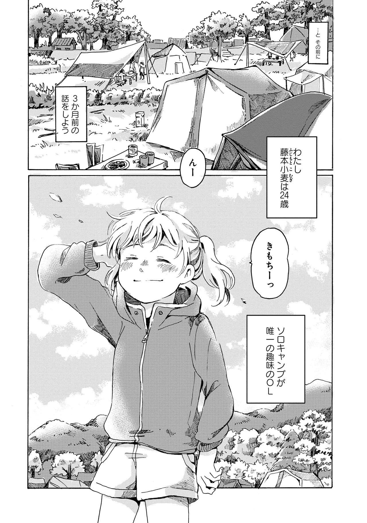 24歳OL・藤本小麦の唯一の趣味は、週末のソロキャンプ。その日もキャンプを楽しんでいたところ、誤って崖から転落。気づくとそこは、見知らぬ異世界だった──! 北の大魔女なら、元の世界に戻る方法を知っているかもしれない。そう考えた小麦は、人語を解する不思議な相棒ポンとともに、魔女の城を目指して旅に出る。ある時は魔物に遭遇し、またある時は悩める人々に出会いながら、キャンプで培った知恵とおもてなしの心で困難を乗り越える小麦たち。とびきりのキャンプごはんに心もお腹も満たされる、ほのぼのファンタジー♪
